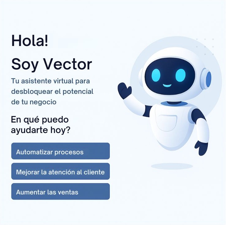 🚀 Imaginá tener un asistente como este, trabajando para vos 24/7Probalo ahora. Vector es un asesor virtual que te da ideas, entiende tus problemas y te muestra cómo podrías resolverlos con inteligencia artificial.